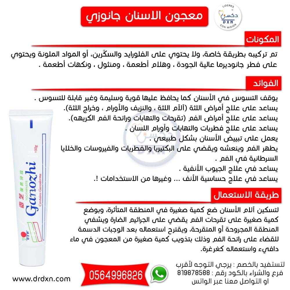 - معجون الاسنان جانوزي طبيعي 100% ، كما هو الحال في أغلب منتجات DXN .