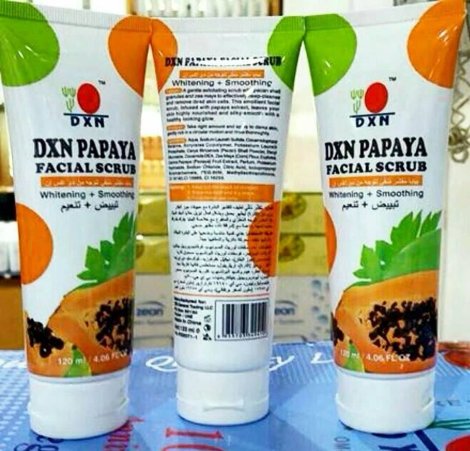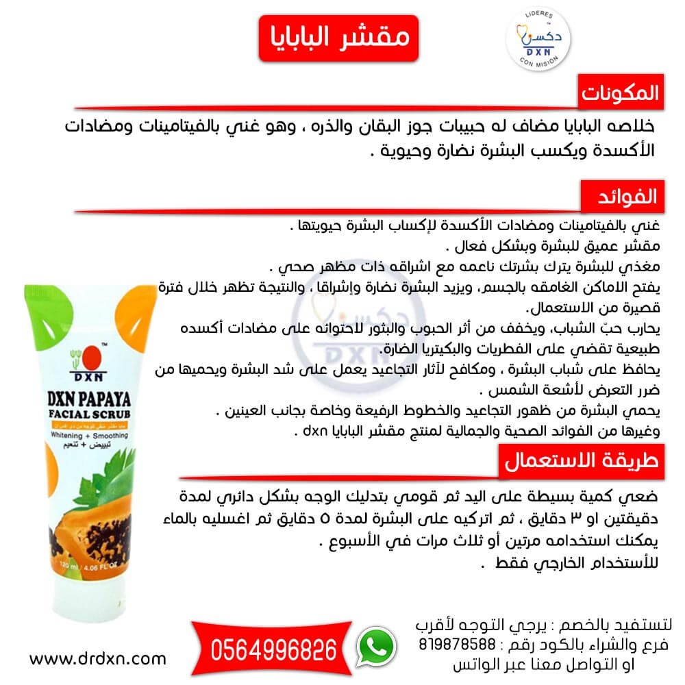 مقشر البابايا مقشر لتقشير البشره.. مطري للوجه منقوع مع خلاصه البابايا.. اضيفت له حبيبات جوز البقان والذره ​من فوائده​ :